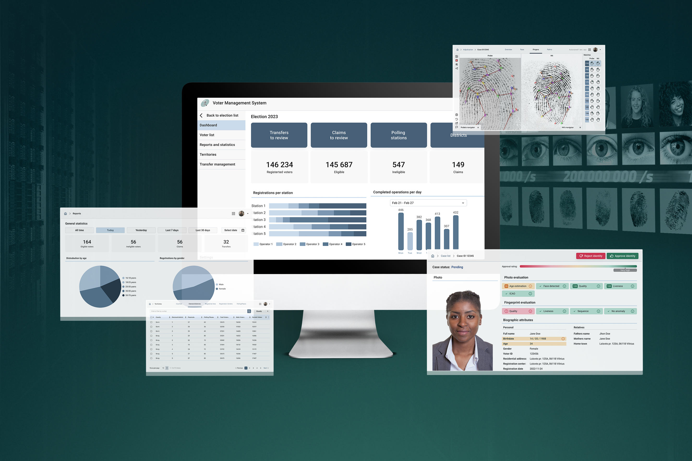 ● Voter management system: Ensure the integrity of elections by registering applicants, eliminating fraudulent records and building a reliable identity registry.