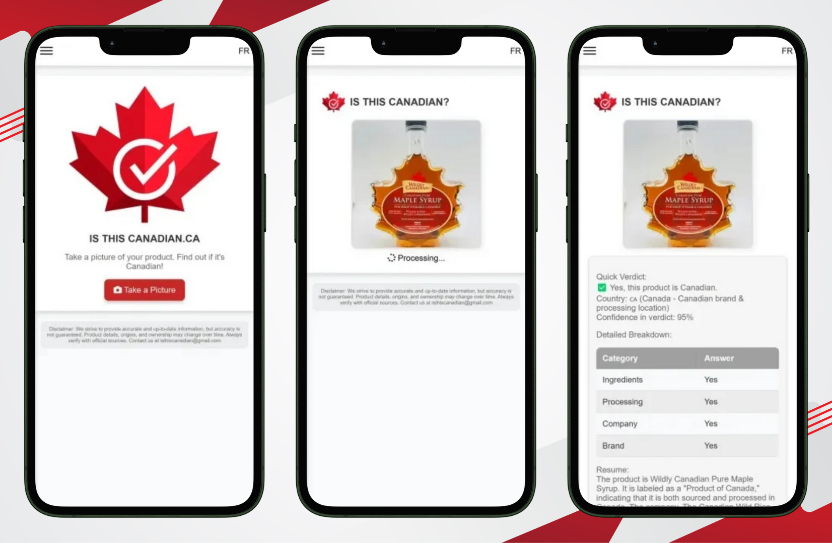 MONTREAL, QUEBEC, CANADA, February 20, 2025 /EINPresswire.com/ — Canada, known for its high-quality and ethically-made products, has always been a top choice for consumers. However, with the rise of global trade, it can be challenging to determine whether a product is truly Canadian. That’s where “Is This Canadian?” comes in. This free and user-friendly web tool and App is designed to help consumers easily identify whether a product is Canadian-owned, made, or distributed, all with just a simple picture.