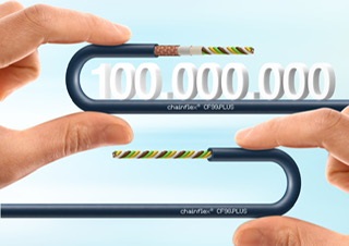 “With great success,” says a delighted Rainer Rössel, chainflex cable Business Unit Manager at igus. “The new CF98.PLUS and CF99.PLUS cables are the first and only cables available on the market approved for use in energy chains and for which igus guarantees 100 million cycles.”