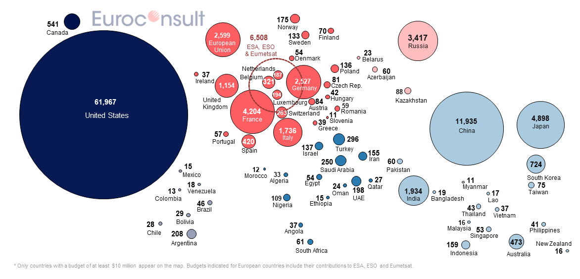 PARIS, WASHINGTON D.C., MONTREAL, YOKOHAMA, SYDNEY, December 15, 2022 /EINPresswire.com/ — Leading space consulting and market intelligence firm Euroconsult has released the 22nd edition of its annual “Government Space Programs” report this week, evidencing a continued increase in global governments’ space budgets. This year has seen a cumulative spend of $103B in 2022, a 9% increase since last year and a record high for the sector. Despite the recent pandemic crisis, governments have increased their investments in the sector to further support the development of their industry and sustain their ambitions.