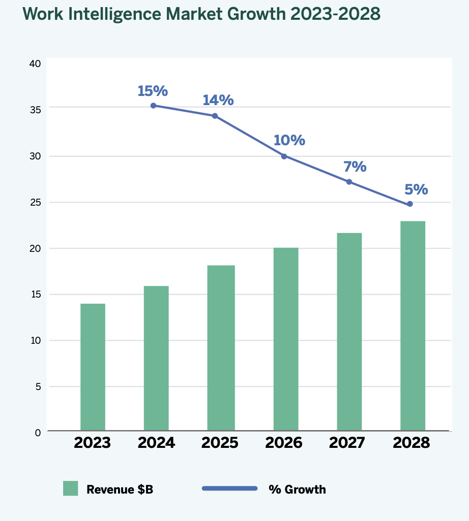 “Work Intelligence” technologies combine human intelligence and AI; the market will grow close to 11% from 2023-2028
