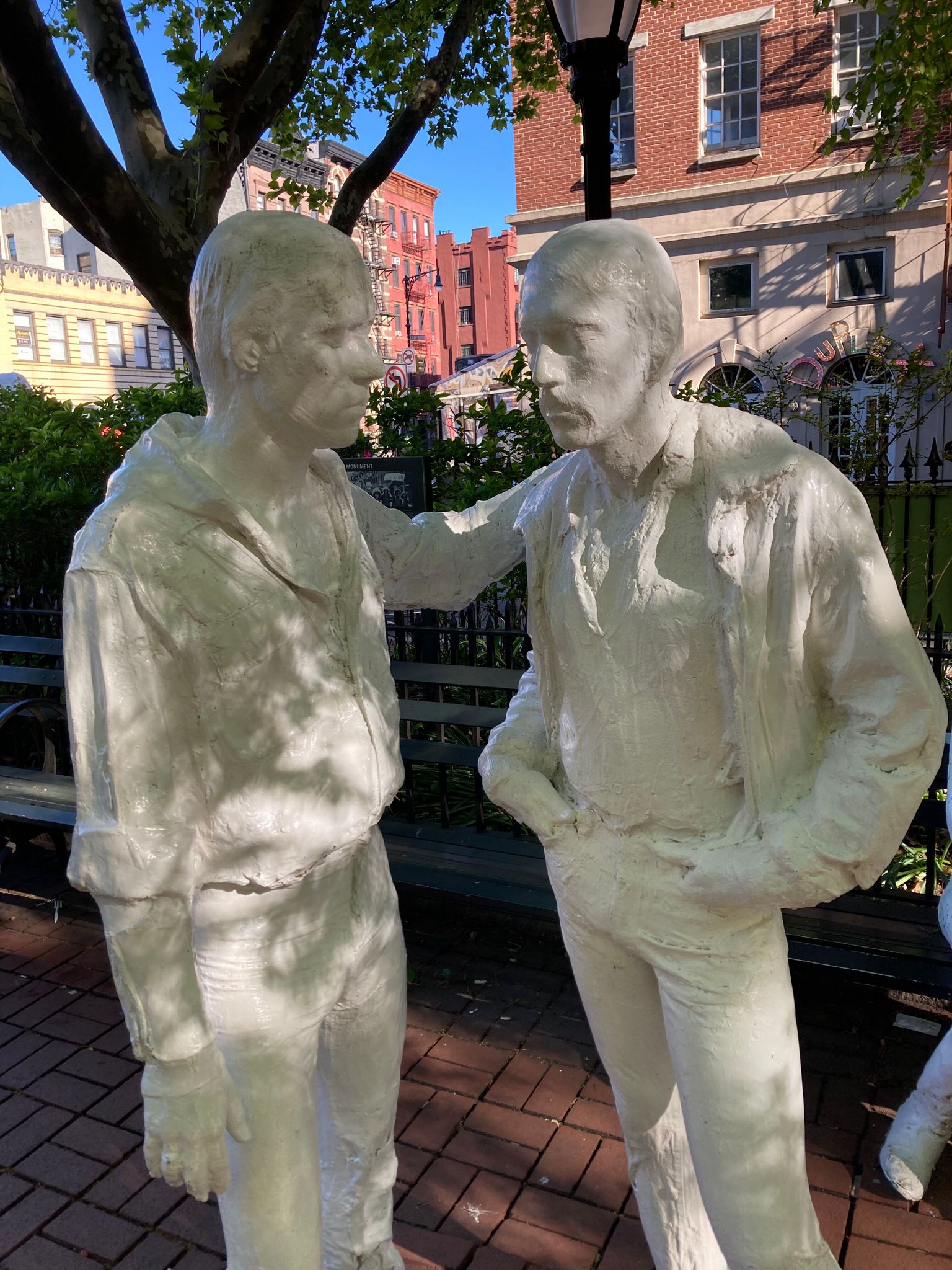 Another talking statues installation, the park voice, tells the story behind the Stonewall uprising and the Stonewall National Monument through the eyes of Christopher Park. Again, with startling directness interspersed by touches of humor, the listener becomes privy to the horrifying details of the police raids and harassment of gay people that were so common at the time.