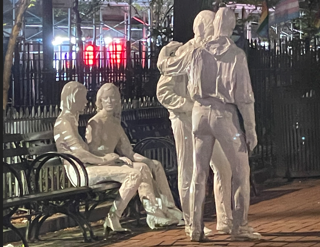 The George Segal “Gay Liberation” statues speak in a humorous, conversational tone, as though the two couples have been brought to life: