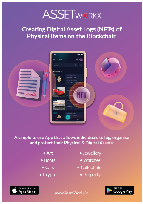 The NFT based platform: ‘Asset Workx‘ aims to be a global leader in creating digital asset logs for the proof of ownership and authenticity of luxury physical goods, via NFTs on the blockchain. By providing an accessible solution for brands and retailers at point of sale and an easy to use app for individuals for the resale market, we will help to secure these assets, build trust, reduce counterfeiting and fraud in the resale market.