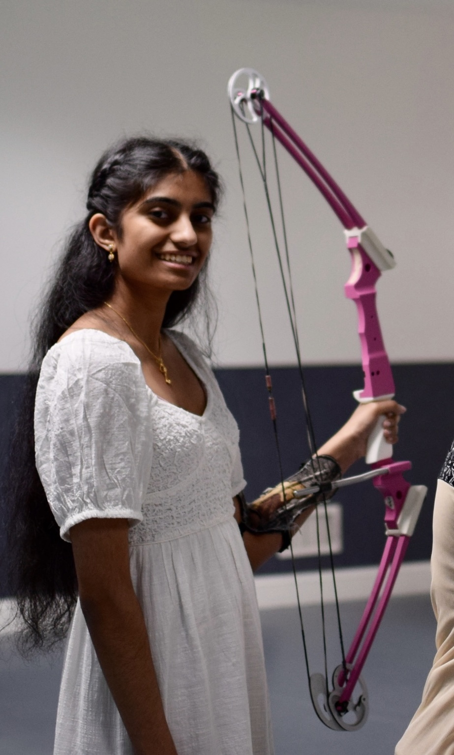 Outside of academia, Niyathi has shown a special talent for the visual arts and has created numerous artistic works. She sees art as an outlet that soothes her, helping her to balance out the stressors that come with studying and excelling in complex subjects. “I love to draw still life or landscapes,” said Niyathi. “Art just calms me down and helps me focus my attention.” Niyathi’s artwork has been published in books and is nationally recognized. She received the Scholastic Art Silver Key (a regional award for self-portraits), as well as an award from the Constitution Poster Contest (a national contest for the portrayal of the Constitution). Niyathi just started to play archery as well, which she finds exciting.