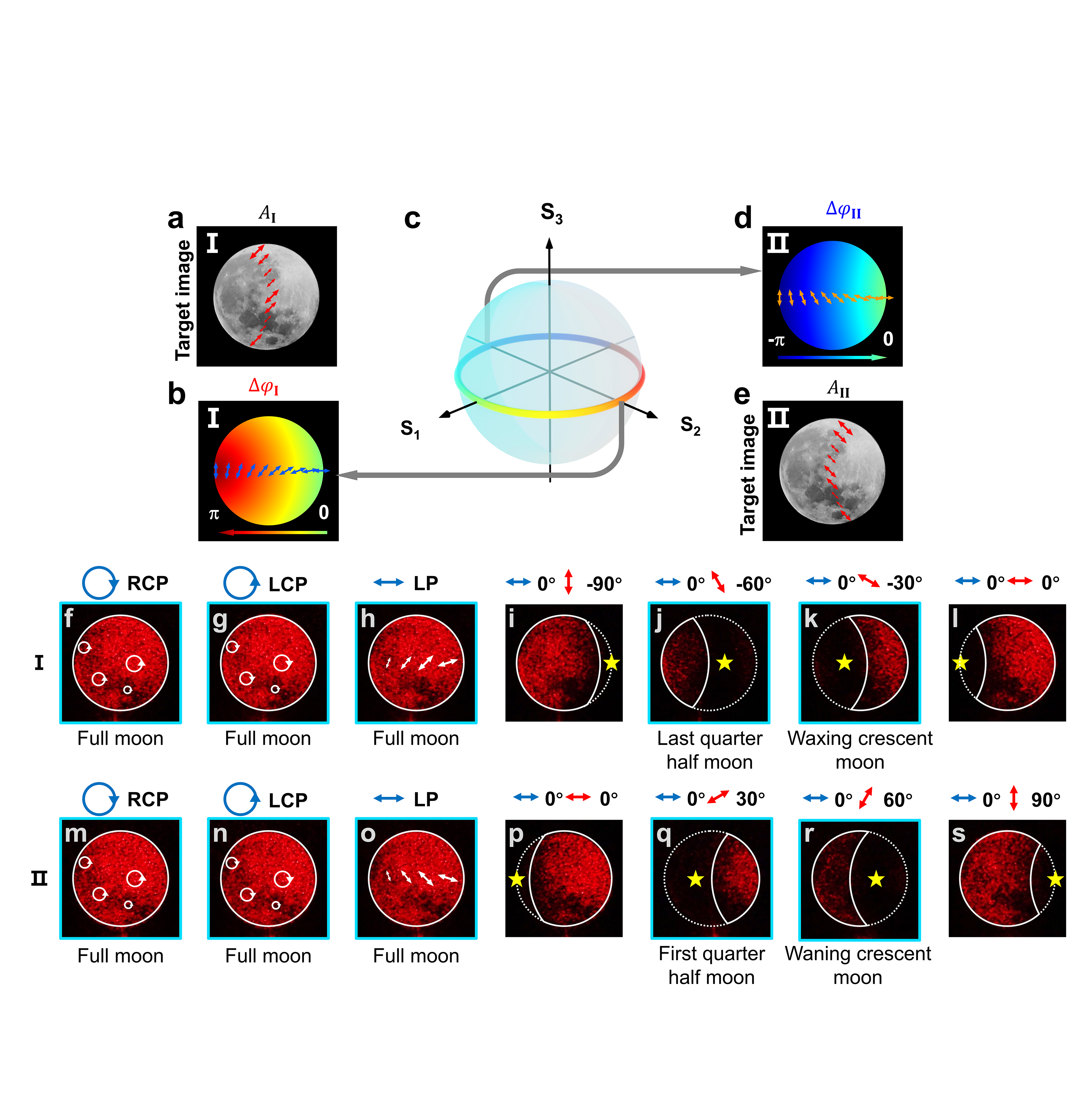 Vectorial LC-holographic lunar phases encoded with independently and continuously varied polarization and amplitude distributions.