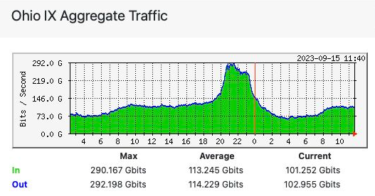 A notable highlight involves the recent record with Amazon Streaming. The highly popular Football on Amazon Streaming reached a new peak, approaching 300Gbps. This significant accomplishment showcases Ohio IX’s capability and dedication to offer Ohio networks quicker and more cost-effective access to leading content providers such as Amazon, Apple, Netflix, Valve/Steam, and Microsoft, to name a few.