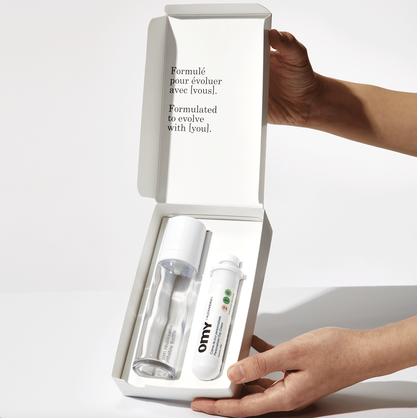 “To achieve this innovation, we worked with the National Research Council of Canada to create new blending processes, adjust our computer and traceability systems and design hermetic packaging that would prevent the product from coming into contact with air and light to ensure optimal freshness and effectiveness,” says Rachelle Seguin, president, co-founder and chemist of Omy Laboratoires. “Over the past three years, we’ve worked with engineers, formulators and programmers to implement these changes and realize our dream of launching the world’s first refillable customized skincare products.”