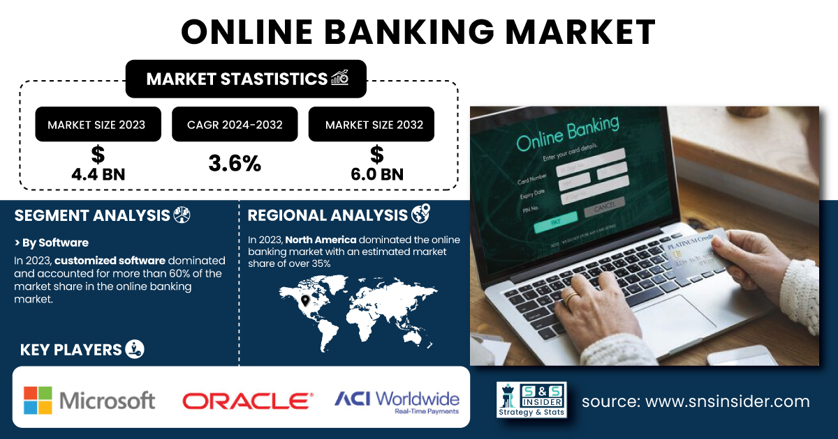 AUSTIN, TX, UNITED STATES, January 29, 2025 /EINPresswire.com/ — The Online Banking Market size was USD 4.4 Billion in 2023 and is expected to reach USD 6.0 Billion by 2032 and grow at a CAGR of 3.6% over the forecast period of 2024-2032.