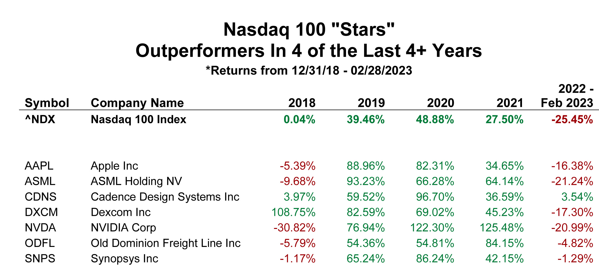 Only 7 Stocks Have Outperformed the Nasdaq 100 in 4 of the Past 4+ Years!