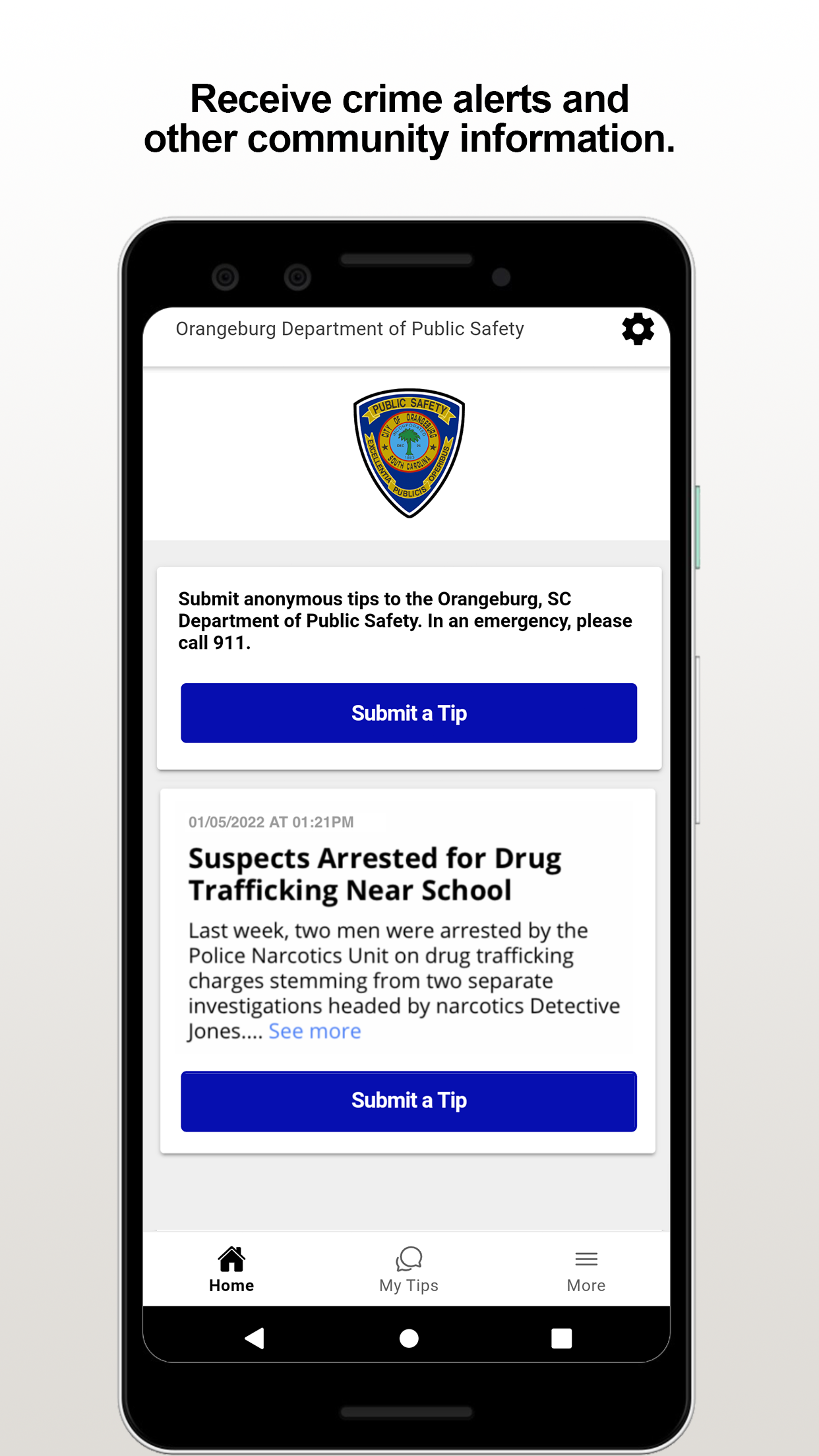 The Orangeburg DPS app provides the capability for the public to share an anonymous tip with DPS and allows officers to respond in order to create an anonymous two-way conversation.
