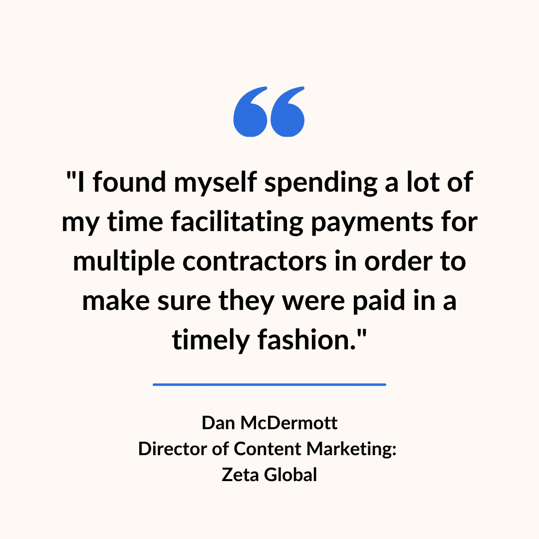 Zeta Global’s Senior Director of Product Marketing and Content Strategy, Dan McDermott, faced considerable challenges in managing the company’s content creation processes. Despite having a dedicated content team, the demands of producing specialized content across various business units were overwhelming. Additionally, the administrative burden of managing contractor payments was consuming valuable time that could be better spent on strategic initiatives.