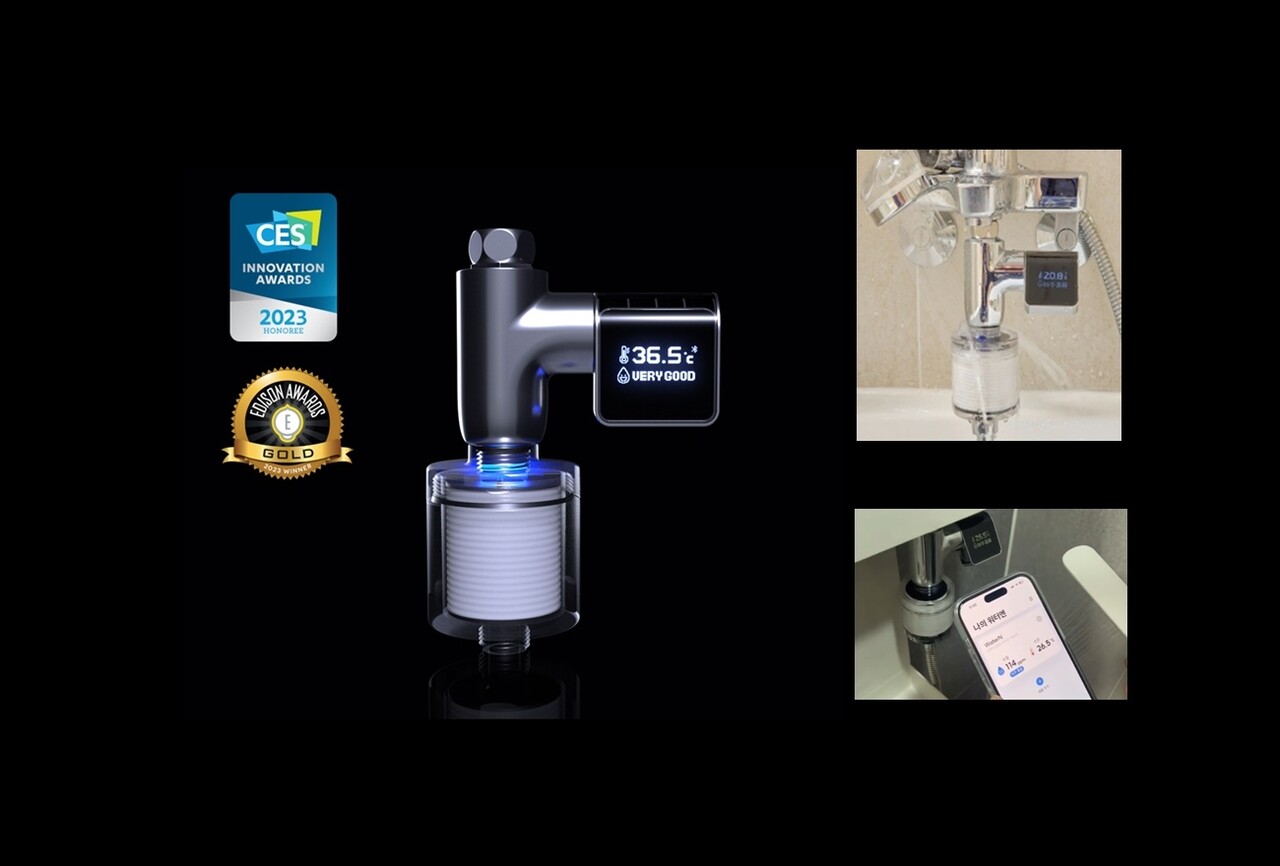 The ‘Water-N’ series uses energy harvesting technology without batteries or external power. The device generates power using water flow and measures water quality, flow rate, and temperature daily in real-time. This data is analyzed on a cloud server, providing users with alerts for potential dangers or notifications for filter replacements.