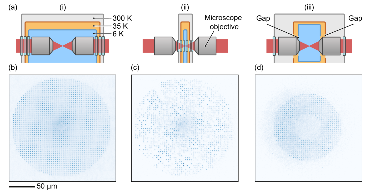 This successful trapping of single rubidium atoms in large arrays of optical tweezers, comprising up to 2,088 sites, within a cryogenic environment at a temperature of 6 K represents one of Pasqal’s latest feats in quantum computing. This achievement involves innovative optical designs that combine ultra-high-vacuum-compatible microscope objectives at room temperature with windowless thermal shields, ensuring efficient trapping at cryogenic temperatures. In an industry first, Pasqal demonstrated atom-by-atom rearrangement of an 828-atom target array using moving optical tweezers controlled by a field-programmable gate array (FPGA).