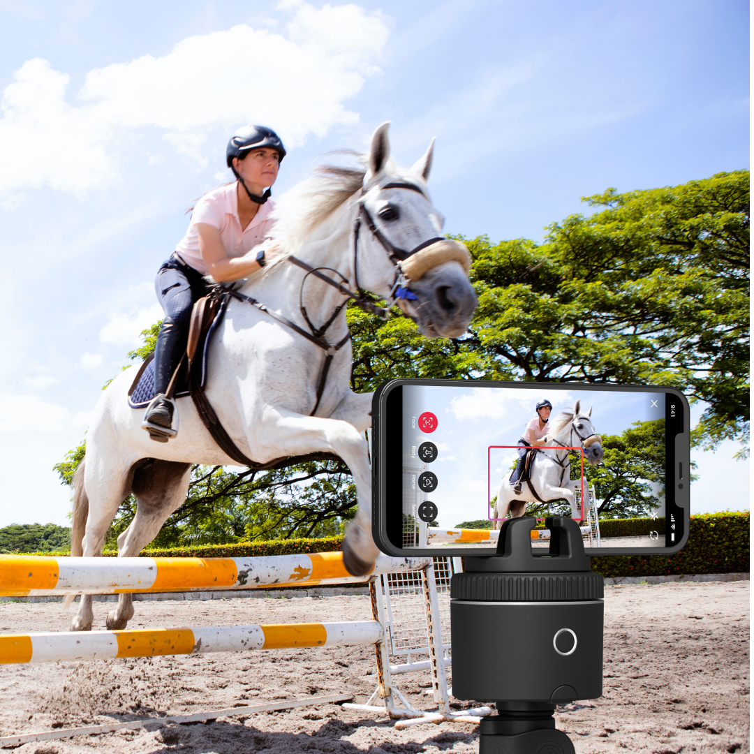 Pivo Pod is a smartphone (iOS or Android) mount that provides 360 degrees of face, body, and even horse motion tracking. This means that anyone with a smartphone can capture content without the help of a cameraman. Pivo keeps equestrians in the frame while they ride, allowing them to capture smooth, quality videos of their training routines — completely hands-free.