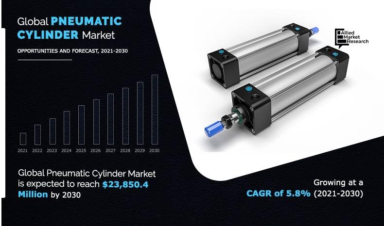 pneumatic cylinder market size was valued at $13,375.8 million in 2020, and is projected to reach $23,850.4 million by 2030, registering a CAGR of 5.8% from 2021 to 2030.