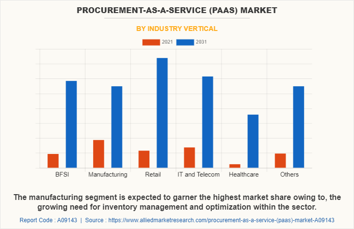 WILMINGTON, DE, UNITED STATES, November 1, 2023 /EINPresswire.com/ — According to a new report published by Allied Market Research, titled, “Procurement-as-a-Service (PaaS) Market, by Component (Strategic Sourcing, Spend Management, Process Management, Category Management, Contract Management, Transaction Management), by Organization Size (Large Enterprise, Small and Medium Enterprises), by Industry Vertical (BFSI, Manufacturing, Retail, IT and Telecom, Healthcare, Others): Global Opportunity Analysis and Industry Forecast, 2021-2031″.
