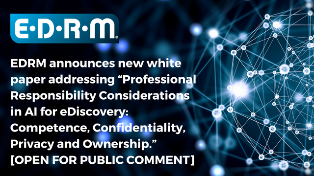 EDRM Announces New White Paper Addressing “Professional Responsibility Considerations in AI for eDiscovery: Competence, Confidentiality, Privacy & Ownership.”