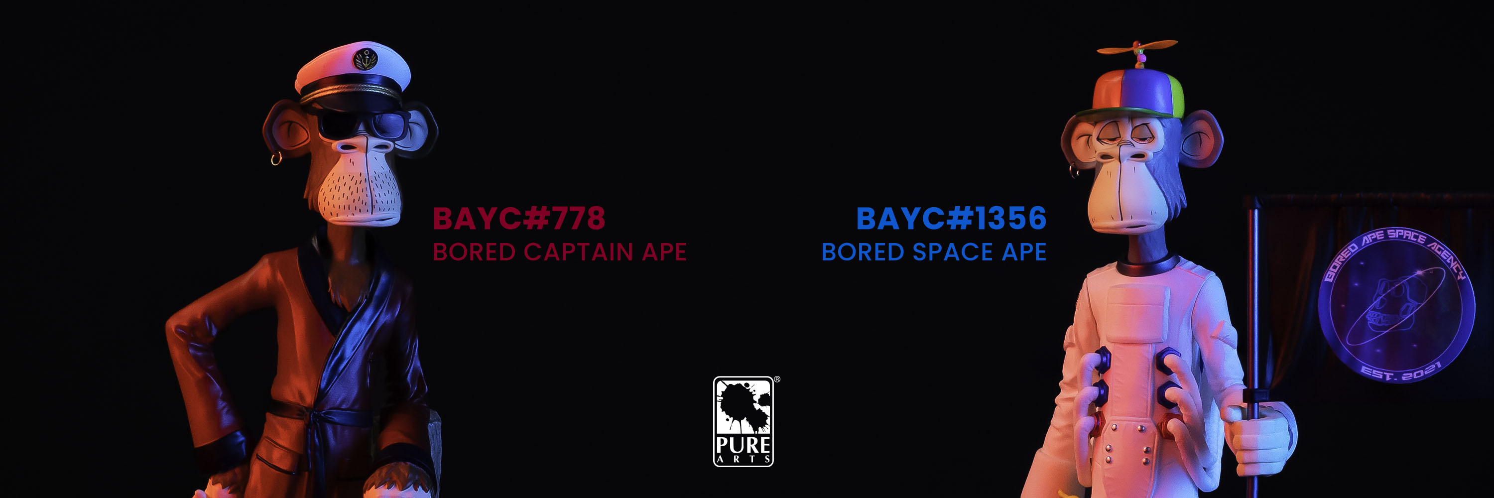 PureArts is proud to unveil its first high-end Bored Ape Yacht Club collectibles, created in collaboration with Bored Ape owners and with the support of BoredJobs. Pre-orders for the BAYC #1356 – Bored Space Ape 1/8 Scale statue and BAYC #778 – Bored Captain Ape 1/8 Scale statue will open Friday, December 2 at 4 PM EST during Art Basel Miami at the OtherBlock event and also on Purearts.com.