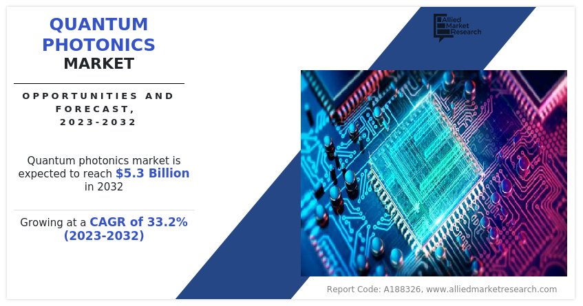PORTLAND, OR, UNITED STATES, September 26, 2023 /EINPresswire.com/ — Allied Market Research published a report on Quantum Photonics Market by Offerings, Application, Verticals Global Opportunity Analysis and Industry Forecast, 2023-2032. The quantum photonics market was valued at $0.30 billion in 2022, and is estimated to reach $5.3 billion by 2032, growing at a CAGR of 33.2% from 2023 to 2032.