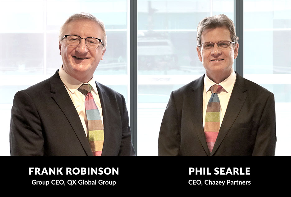“Em QX, sempre focamos em possibilitar a transformação dos negócios de nossos clientes utilizando nosso exclusivo método 3P de pessoas, processos e plataforma, e estamos entusiasmados que a incorporação com Chazey nos permita ajudar as organizações a resolver sua barreira mais importante para o crescimento: a adoção digital e a transformação do negócio em escala”, disse Frank Robinson, CEO do Grupo QX Global. “A incorporação de Chazey fomenta nossa visão de proporcionar soluções integradas de ponta a ponta para ajudar nossos clientes a aproveitar os últimos modelos operativos e tecnologias emergentes. Também estou encantado de dar as boas-vindas oficiais a Phil Searle ao Conselho de Administração de QX Global Group como Diretor de Transformação.”
