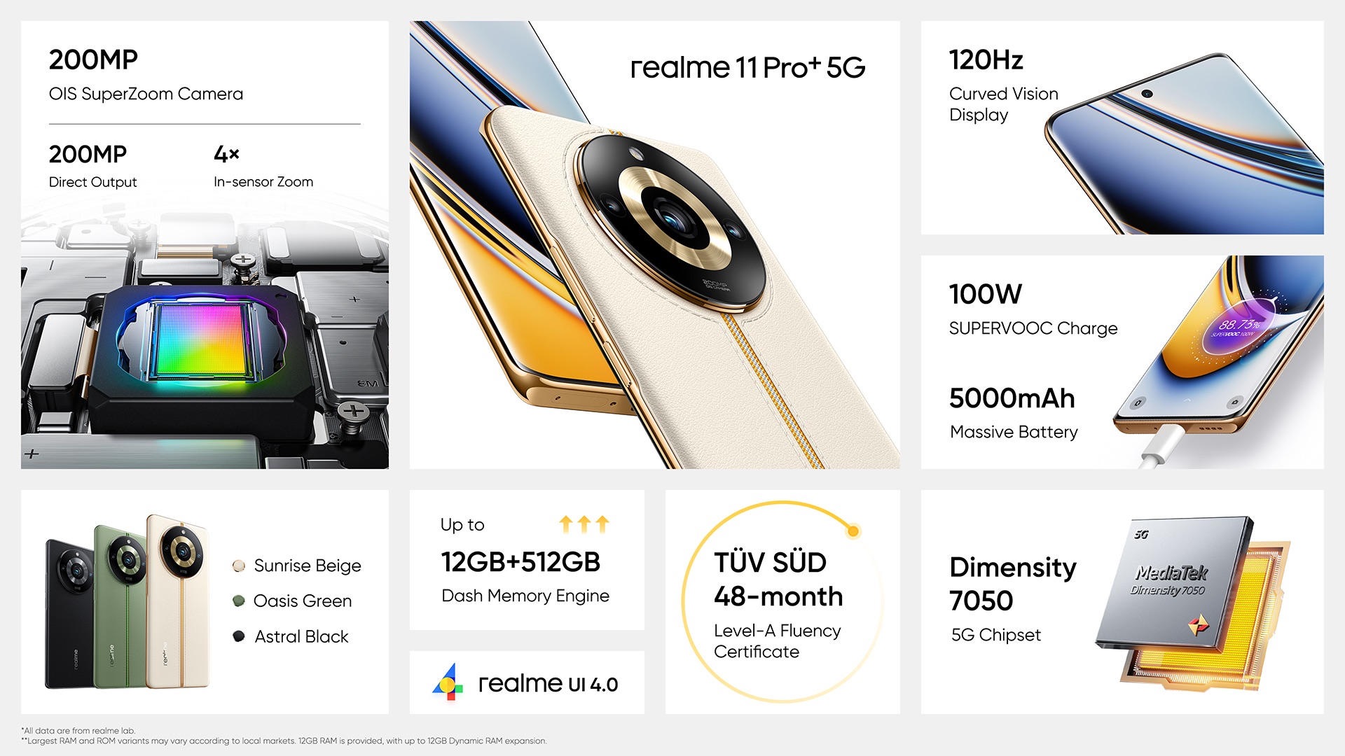 DUBAI, UAE, July 17, 2023/EINPresswire.com/ — realme 11 Pro+ with 100W SuperVooc, 512GB storage, and 120Hz curved vision display at AED 1,399