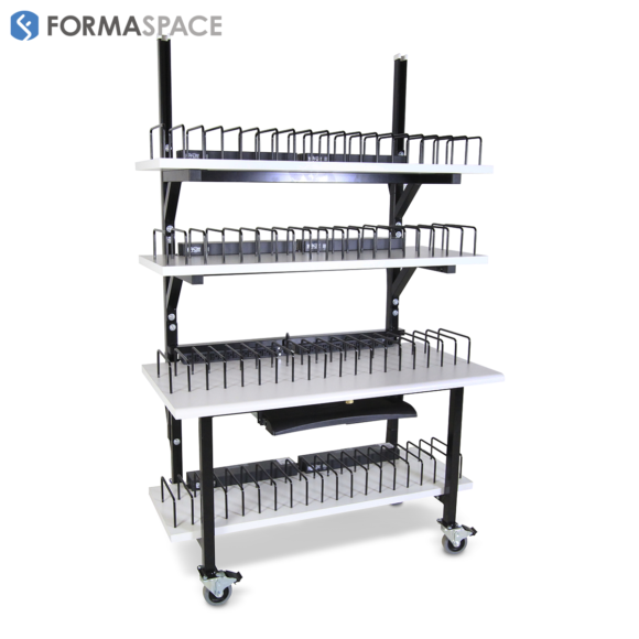 The custom mobile rack system shown above charges computing devices safely and efficiently.