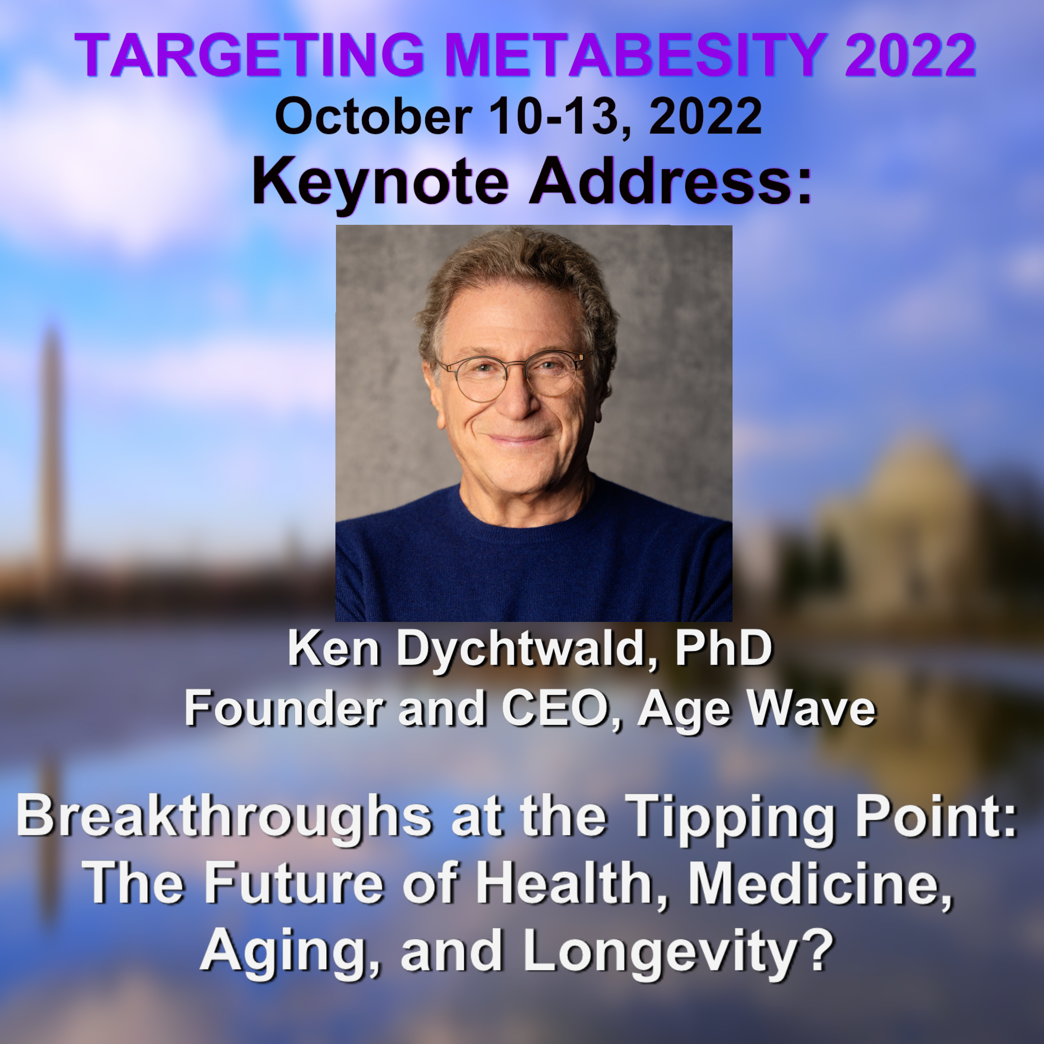 Longevity visionary, gerontologist, psychologist and author of 19 books on aging and health-related issues, Dr. Ken Dychtwald, Founder and CEO of Age Wave, will deliver the Metabesity22 keynote address, “Breakthroughs at the Tipping Point: The Future of Health, Medicine, Aging and Longevity”. His remarks will include information on how rising longevity and the aging of Boomers worldwide are radically altering both the demographic landscape and every aspect of our personal, social, financial, and political lives. He’ll cover: