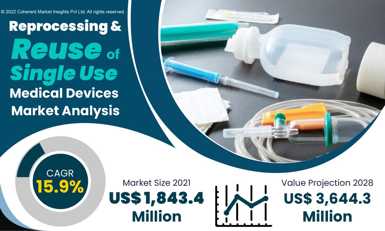 SEATTLE, WASHINGTON, UNITED STATES, October 26, 2022 /EINPresswire.com/ — Coherent Market Insights, the premium market research firm, has released a new market study titled “Reprocessing and Reuse of Single Use Medical Devices Market” Share, Size, Trends, Industry Analysis Report 2022 – 2028.” The report provides new perspectives on opportunities and challenges in a post-COVID-19 marketplace that has been significantly transformed.