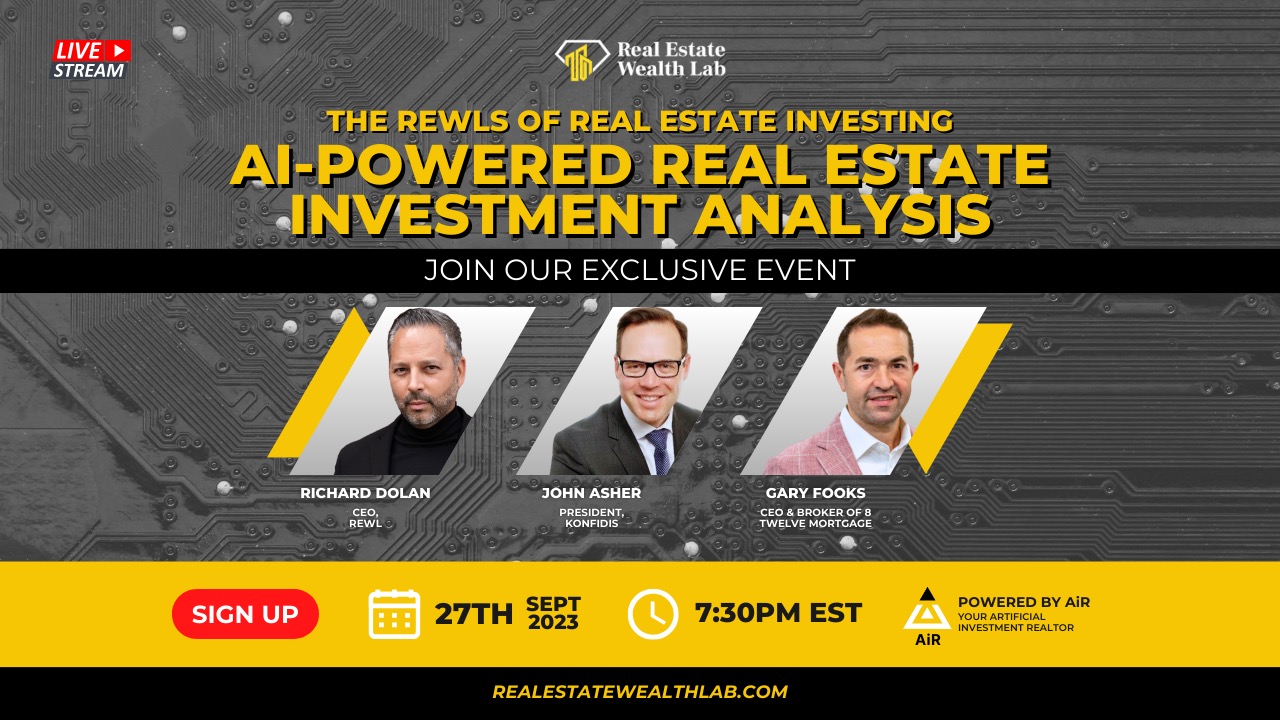 TORONTO, ONTARIO, CANADA, September 27, 2023 /EINPresswire.com/ — In an era where innovation and efficiency intersect, REWL is setting a benchmark by becoming the first real estate member organization to utilize Artificial Intelligence (AI) in filtering market listings. By aligning listings with distinct investment strategies, the organization promises to save countless hours for real estate enthusiasts and investors. To celebrate and elaborate on this pioneering approach, REWL has scheduled an exclusive event for September 27th, 2023, via Zoom.