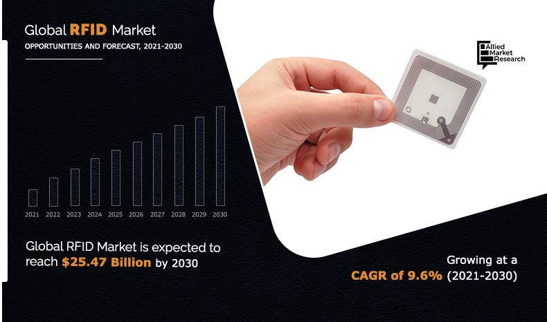 The global RFID market size was valued at $10.41 billion in 2020, & is projected to reach $25.47 billion by 2030, registering a CAGR of 9.6% from 2021 to 2030.