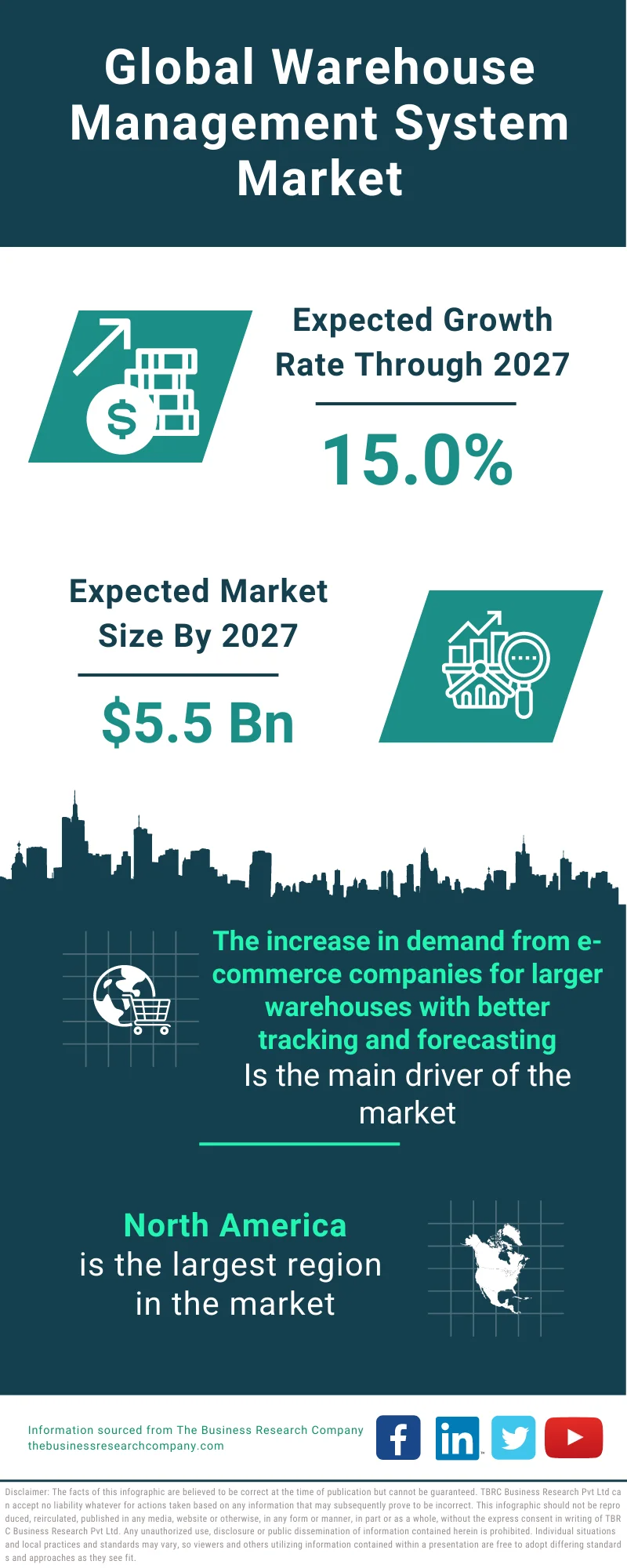 LANDON, GREATER LANDON, UK, November 2, 2023 /EINPresswire.com/ — The global warehouse management system market, currently valued at $2.74 billion, is projected to reach $3.15 billion in 2023, boasting a compound annual growth rate (CAGR) of 14.9%. Despite the ongoing repercussions of the Russia-Ukraine conflict, including economic sanctions, supply chain disruptions, and inflationary pressures, the market is anticipated to witness substantial expansion, reaching $5.5 billion by 2027. This growth trajectory is primarily attributed to the escalating demand from e-commerce companies, prompting the establishment of larger warehouses equipped with advanced tracking and forecasting capabilities to effectively manage and streamline the movement of extensive inventories.
