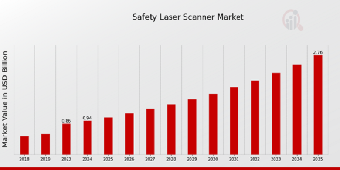 TEXAS, TX, UNITED STATES, March 13, 2025 /EINPresswire.com/ — The Safety Laser Scanner Market is projected to expand from USD 0.94 billion in 2024 to USD 2.76 billion by 2035, reflecting a compound annual growth rate (CAGR) of approximately 10.24% throughout the forecast period (2025–2035).