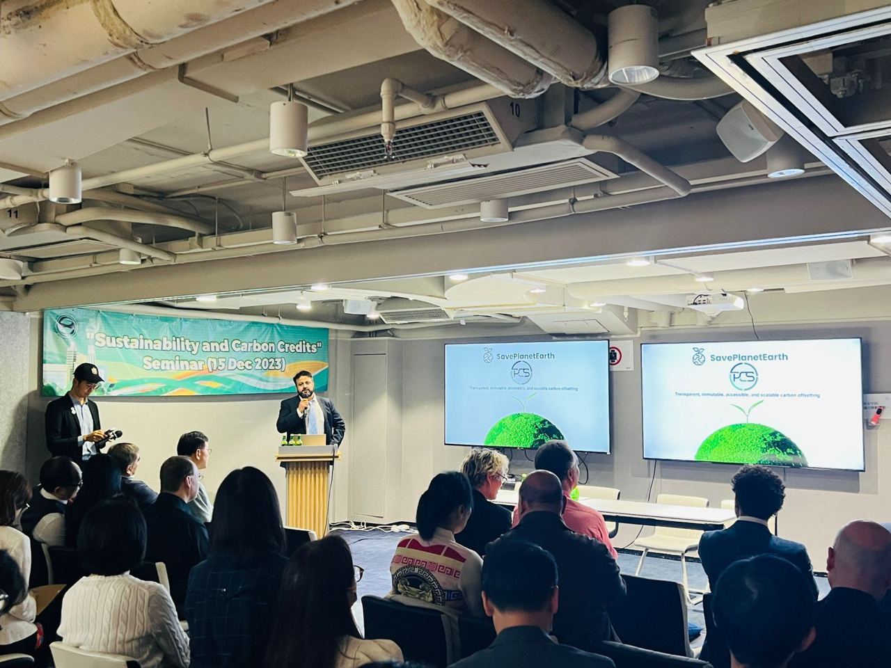 Imran Ali, giving a presentation about the Planetary Carbon Standard to investors and governmental officials.