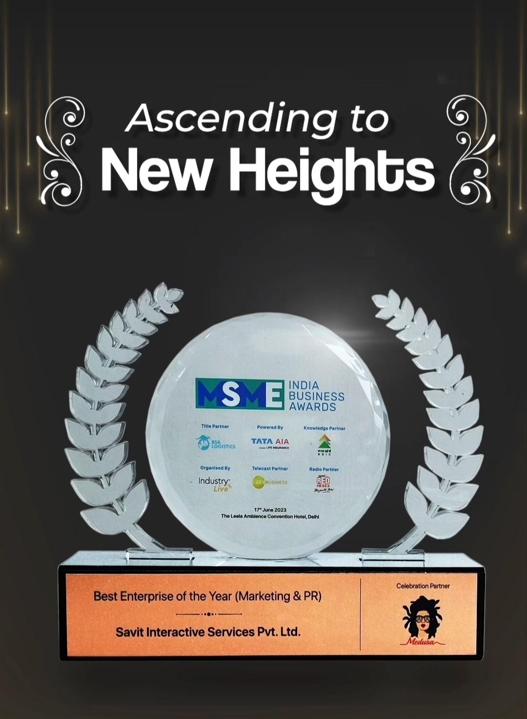 On June 17, 2023, Savit Interactive won the prestigious Marketing and PR category of the third MSME India Business Award.