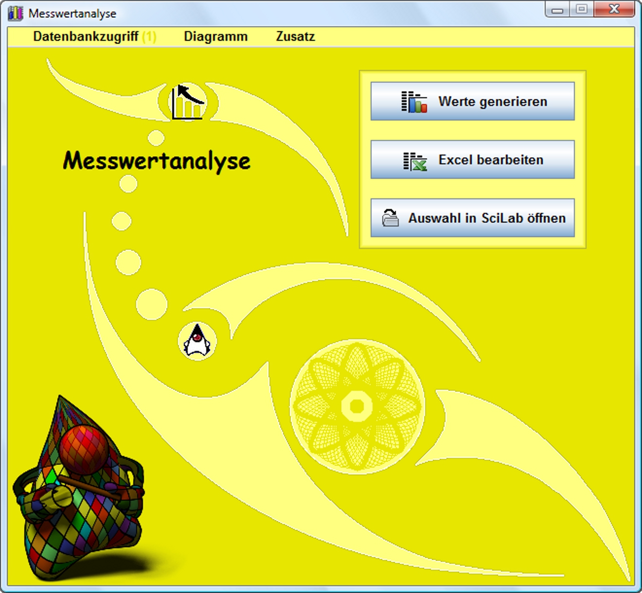 The actual focus here is data transfer from various database management systems, also with large data volumes, to the free software package Scilab (https://en.wikipedia.org/wiki/Scilab). For this purpose, the project measured value analysis was adapted to the Scilab 5.2.1 internal JRE 6 and now includes an excel- and database-supported Java program with simulations of measurement series. In general, it integrates database management systems like Microsoft SQL Server, Oracle Database, MySQL as well as PostgreSQL and integrates Scilab.