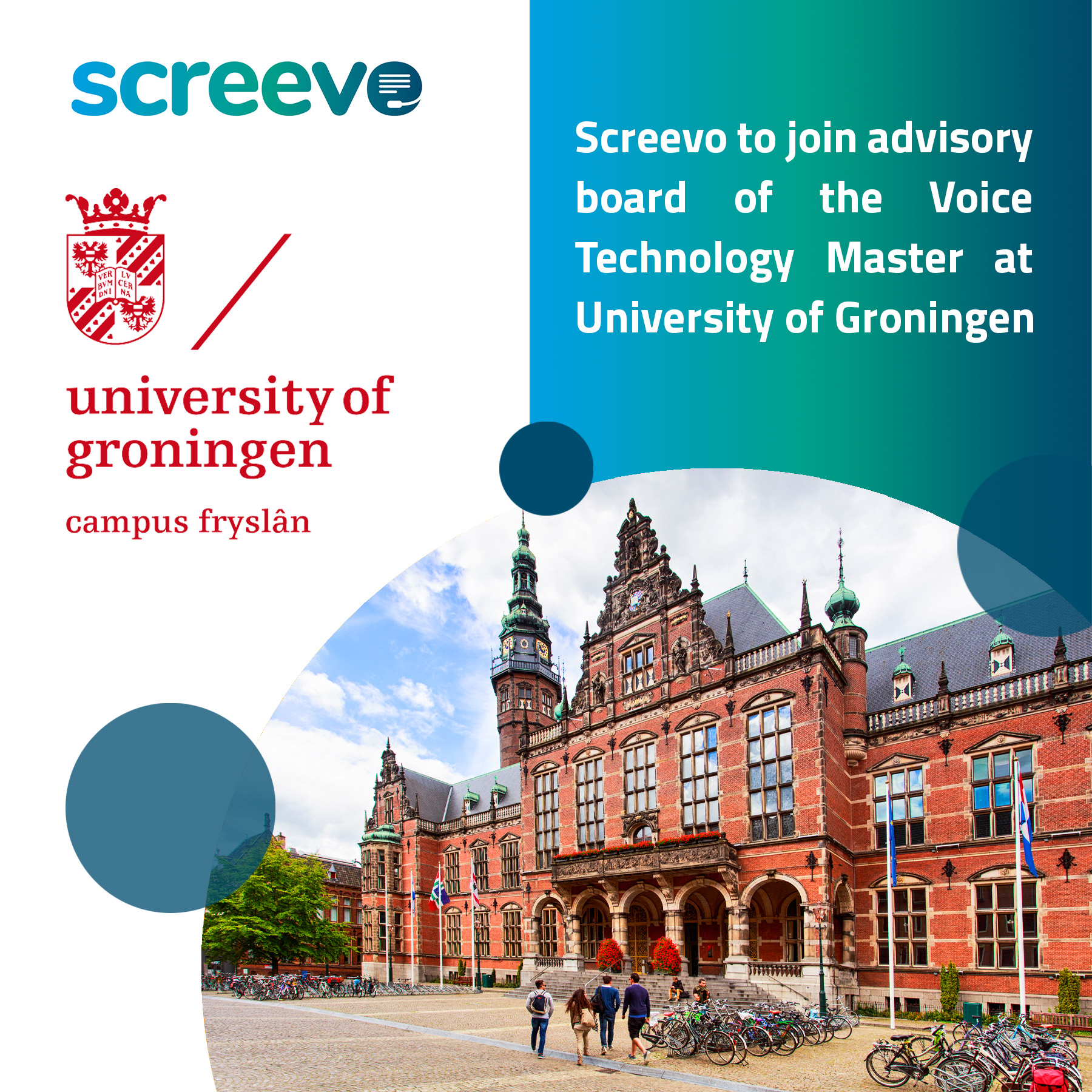 Screevo to join advisory board of the Voice Technology Master at University of Groningen