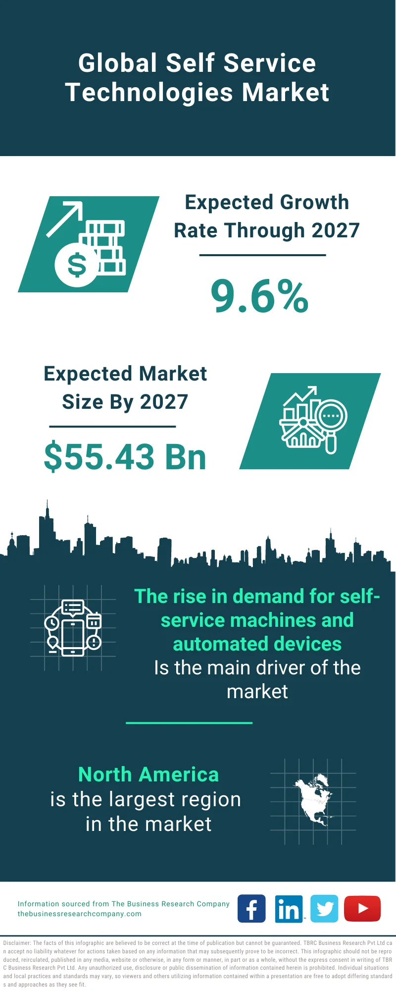 The market size of the self-service technologies is expected to grow to $55.43 billion in 2027 at a CAGR of 9.6%.”