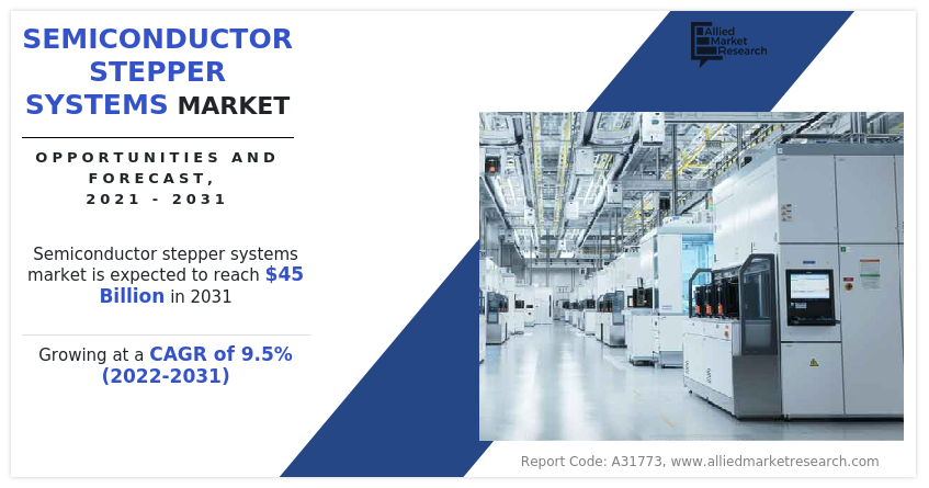 global semiconductor stepper systems market size was valued at $18.2 billion in 2021, and is projected to reach $45 billion by 2031, growing at a CAGR of 9.5%