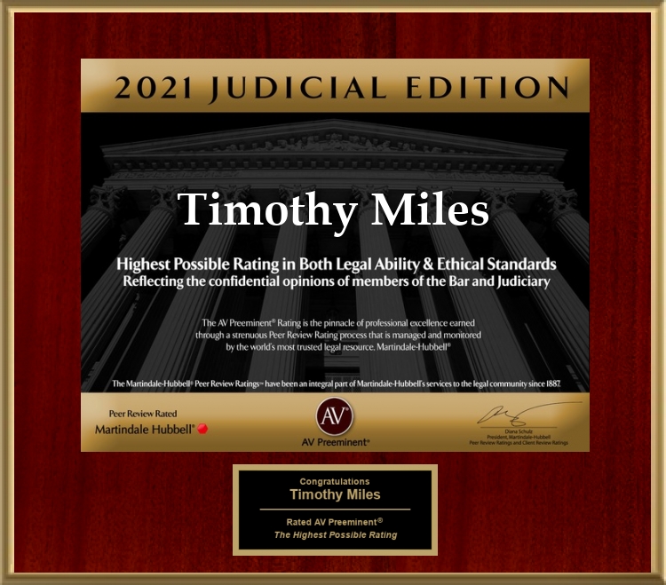 Nationally Recognized Personal Injury Attorney Timothy L. MIles Receives 2022 AV Preeminent Recognition