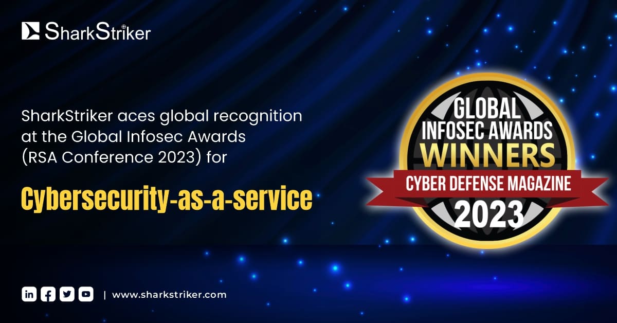 SharkStriker won the Global InfoSec award at RSA Conference 2023 for offering a unique human-led, enterprise-grade & holistic Cybersecurity-as-a-Service.