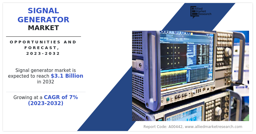 WILMINGTON, DELAWARE , UNITED STATES, March 20, 2024 /EINPresswire.com/ — According to a new report published by Allied Market Research, titled, the signal generator market was valued at $1.6 billion in 2022, and is estimated to reach $3.1 billion by 2032, growing at a CAGR of 7% from 2023 to 2032. The signal generator market is expected to experience growth in the foreseeable future due to several driving factors. This includes technological advancements that enhance capability, along with rising demands for more precise signal generators equipped with advanced features. Additionally, the flourishing telecommunications industry serves as another significant factor propelling the expansion of the signal generator market. However, the emergence of newer technologies and the advent of 5G present substantial growth opportunities for key players within the signal generator market throughout the forecast period.