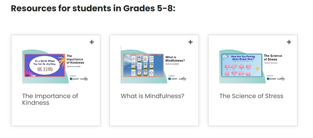 Kevin Winters, Kooth’s North American General manager notes that, “Having content that is engaging and easy for teachers and students to connect to is vital. Lumio’s simple platform will help us get important resources and proven, validated supports in the hands of more teachers and students at this critical time.”