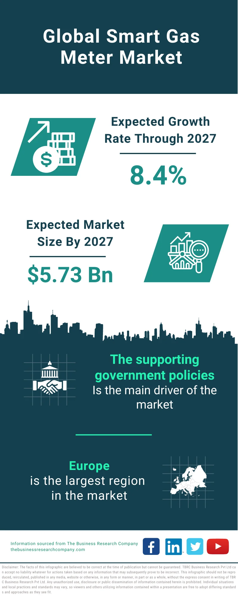 The Business Research Company’s “Smart Gas Meter Global Market Report 2023” is a comprehensive source of information that covers every facet of the market. As per TBRC’s market forecast, the smart gas meter market size is predicted to reach $5.73 billion in 2027 at a CAGR of 8.4%.