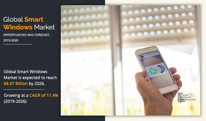 WILMINGTON, DE, UNITED STATES, December 23, 2024 /EINPresswire.com/ — Allied Market Research, titled, “Smart Windows Market by Technology, Type, and Application: Global Opportunity Analysis and Industry Forecast, 2019-2026,” the global smart windows market size was valued at $3.91 billion in 2018, and is projected to reach $8.97 billion by 2026, registering a CAGR of 11.4% from 2019 to 2026.