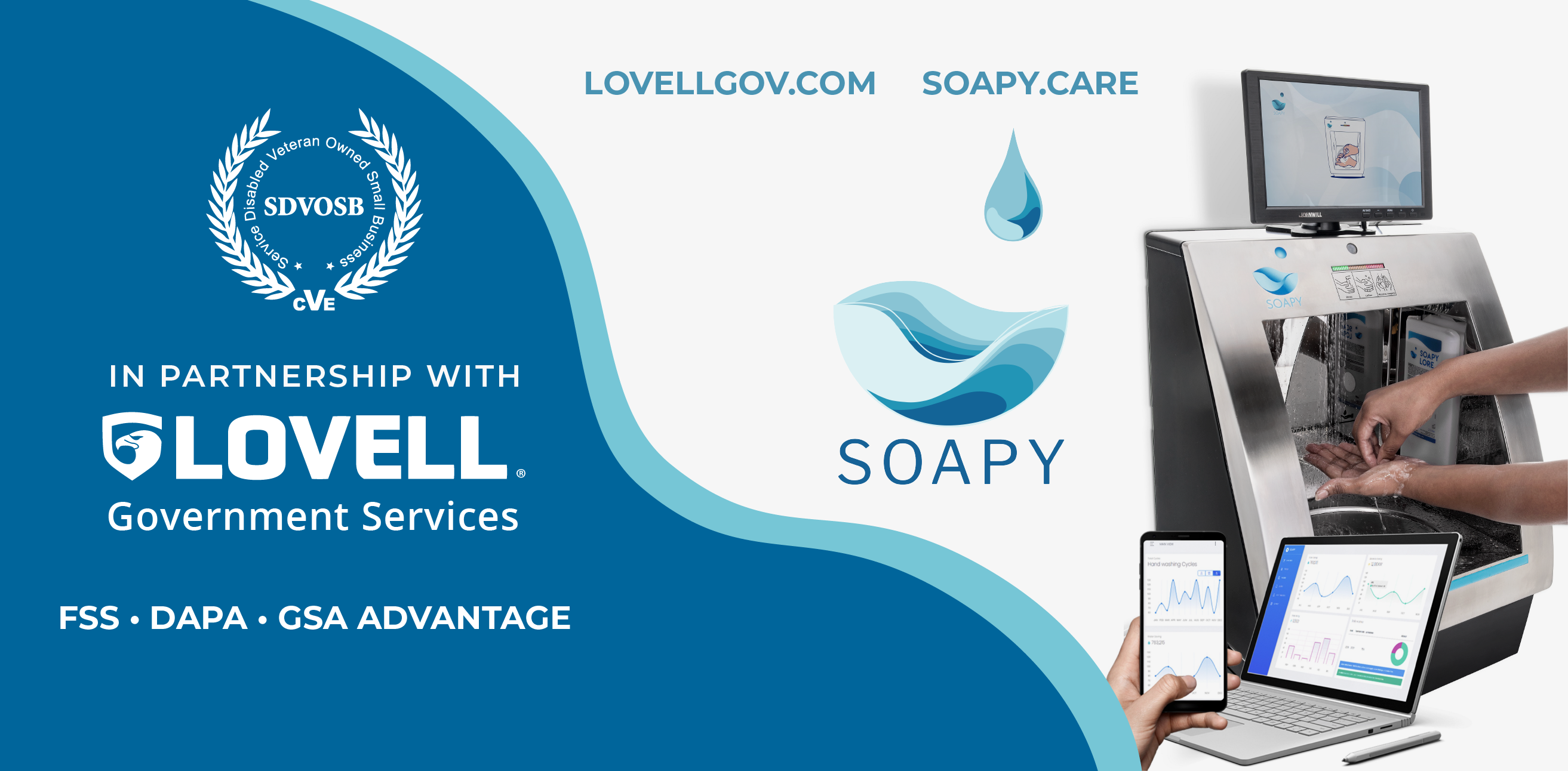 PENSACOLA, FL, UNITED STATES, November 8, 2023 /EINPresswire.com/ — Lovell® Government Services and Soapy Care Ltd, creator of SoapyPro, the intelligent handwashing station, announced today that they have partnered to serve federal healthcare systems such as the Veterans Health Administration (VHA), the Military Health System (MHS), and the Indian Health Service (IHS). Lovell Government Services will serve as Soapy’s Service-Disabled Veteran-Owned Small Business (SDVOSB) vendor to serve these customers through federal contracting systems.