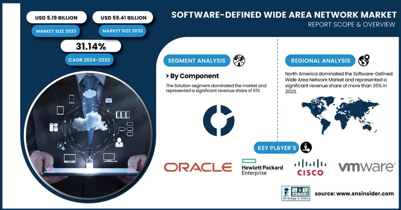 AUSTIN, TX, UNITED STATES, March 3, 2025 /EINPresswire.com/ — The Software-Defined Wide Area Network (SD-WAN) market, valued at USD 5.19 billion in 2023, is projected to reach USD 59.41 billion by 2032, growing at a 31.14% CAGR. Businesses seek for cost-efficient, high-performance networking with cloud growth, remote work, and security threats on the increase. SD-WAN provides improved connectivity, decreased latency, and better application performance through centralized control. Growing SaaS consumption and cloud infrastructure demand secure, effective data transfer. Security capabilities such as encryption and firewalls propel adoption, complemented by 5G rollout and AI-based automation. Companies implementing SD-WAN experience cost savings of up to 50%. Digital transformation and increased SMB adoption further boost market growth.