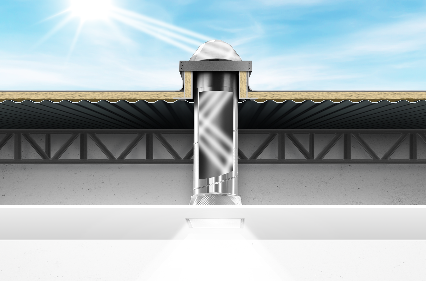Cost-effective, energy-efficient and eco-friendly, a Solatube TDD harvests daylight at the rooftop, transfers it down a highly reflective tube and distributes it evenly into an interior space through a diffuser at the ceiling — on both sunny and cloudy days — with virtually no maintenance. Solatube is proud to offer the highest Light Transfer Efficiency (LTE), the most consistent Color Temperature Maintenance (CTM) and the best light-to-solar heat gain ratio of any daylighting system on the market.