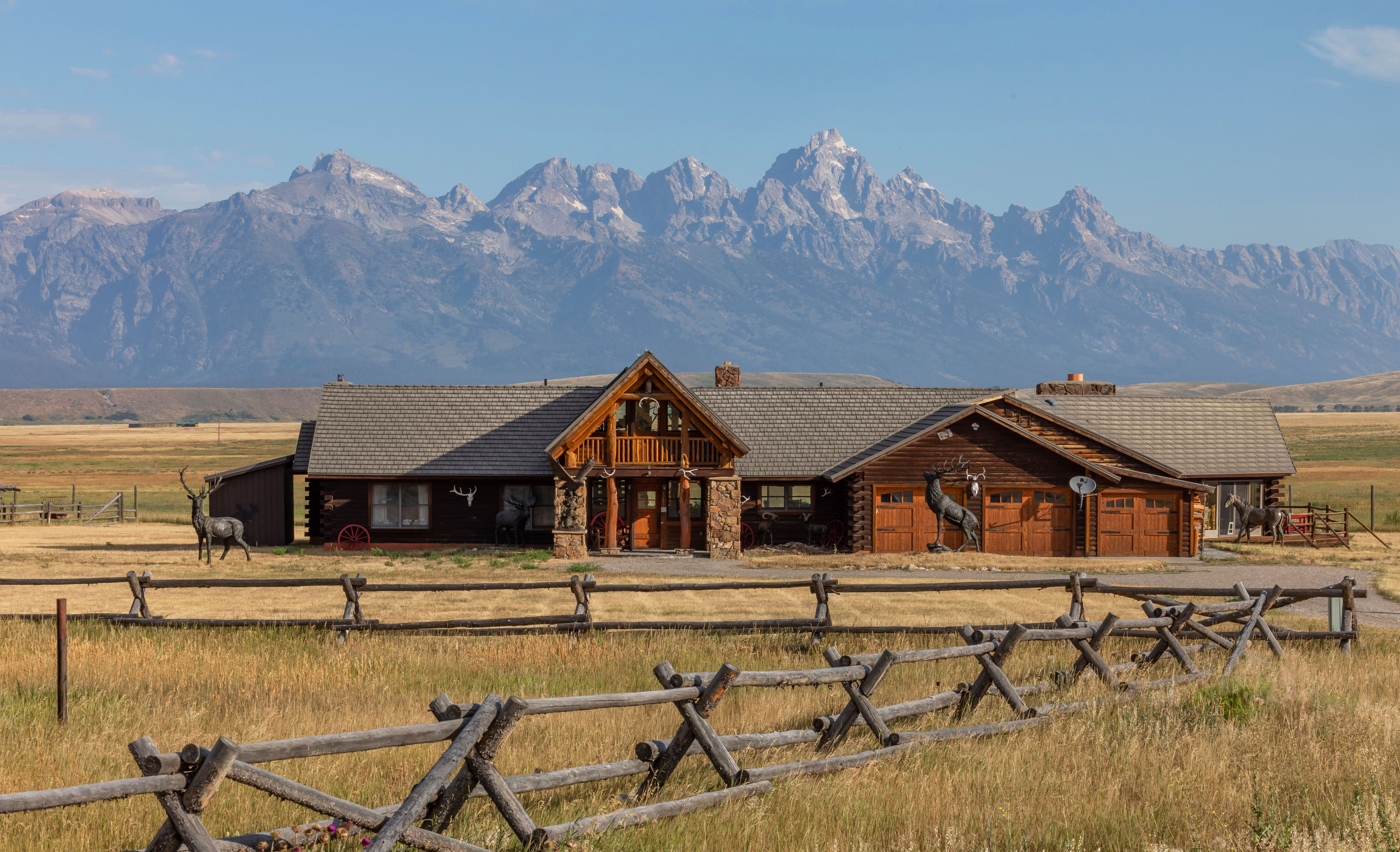 Unobstructed views of the Teton Mountain Range are in plenty at 2205 North Nowlin Trail, including the iconic peak of Grand Teton itself. With the National Elk Refuge bordering 5.14 acres of paradise, some of the absolute best wildlife viewing in all of Jackson Hole can be found=. The home itself is an ideal mix of rustic and luxury, with warm log siding and a sprawling footprint that suits the pastoral landscape in every direction. This view is framed from the living room, where large windows stretch from hardwood floors to the cathedral ceiling high above. Entertain around the natural stone wood-burning fireplace for a night in, or enjoy a sunset from the entertaining deck. Beyond the indoor-to-out entertaining spaces, this horse-friendly property features easy access to local riding trails plus an incredible roster of native fauna.
