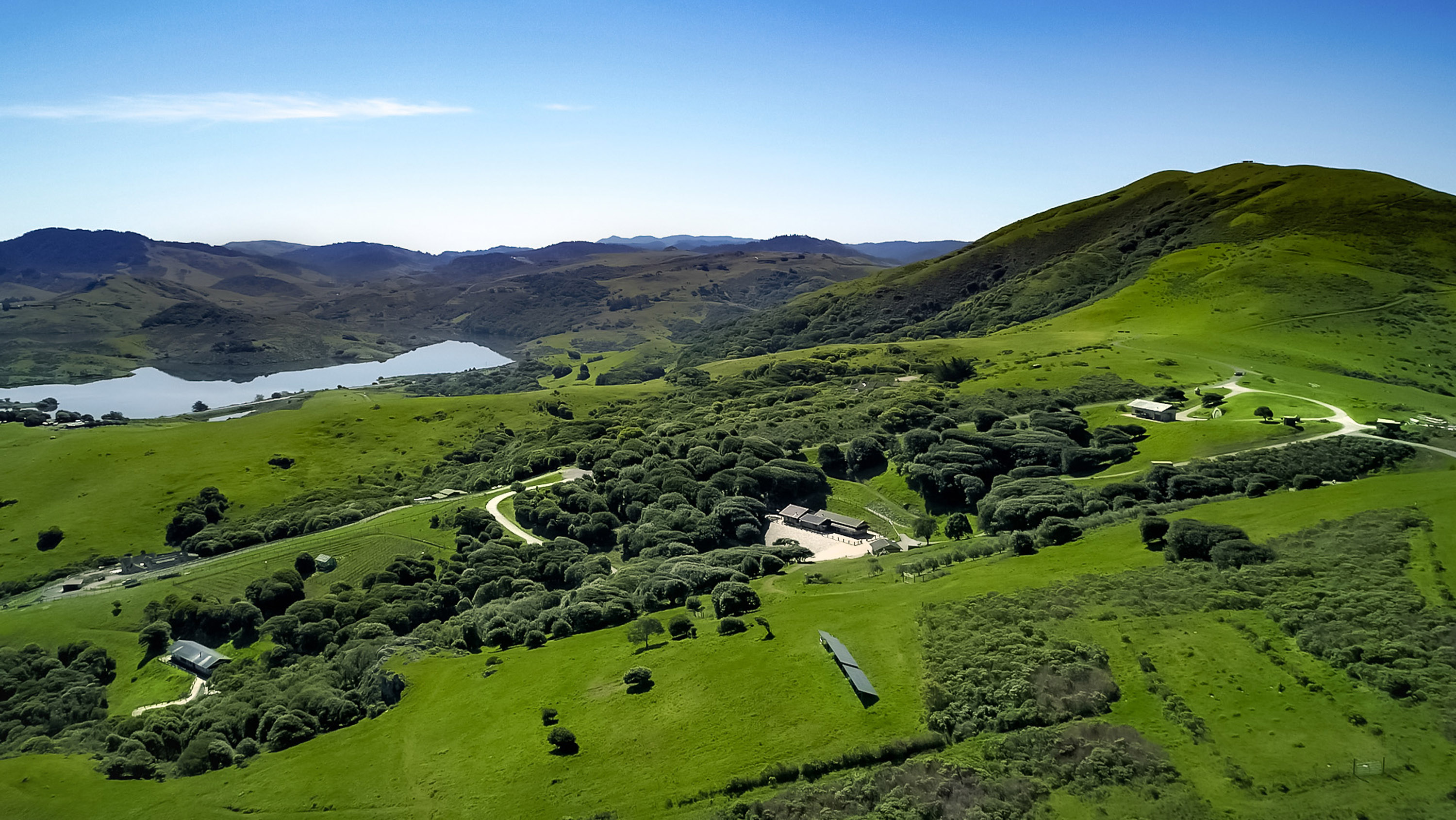 The estate itself is positioned on a slope of West Marin’s iconic Black Mountain, overlooking the Nicasio reservoir, where authentic and meticulously designed Japanese architecture awaits around every bend. The three-bedroom Sukiya-style main residence and the two-bedroom detached guest residence combine traditional Japanese techniques with modern engineering, creating a stunning effect in both aesthetics and execution, from the Sakura cherry hardwood floors to the ceilings of wide-plank cedar, customized by room throughout both homes. Enjoy unmatched privacy from each of the suites by closing the Japanese Fusuma wooden doors, separating the spaces from the main living areas. Outdoors, walking paths connect formal Japanese gardens, organic orchards, and two acres of vineyard, among which also lie a 50,000-gallon spring-fed pool and Bocce court.